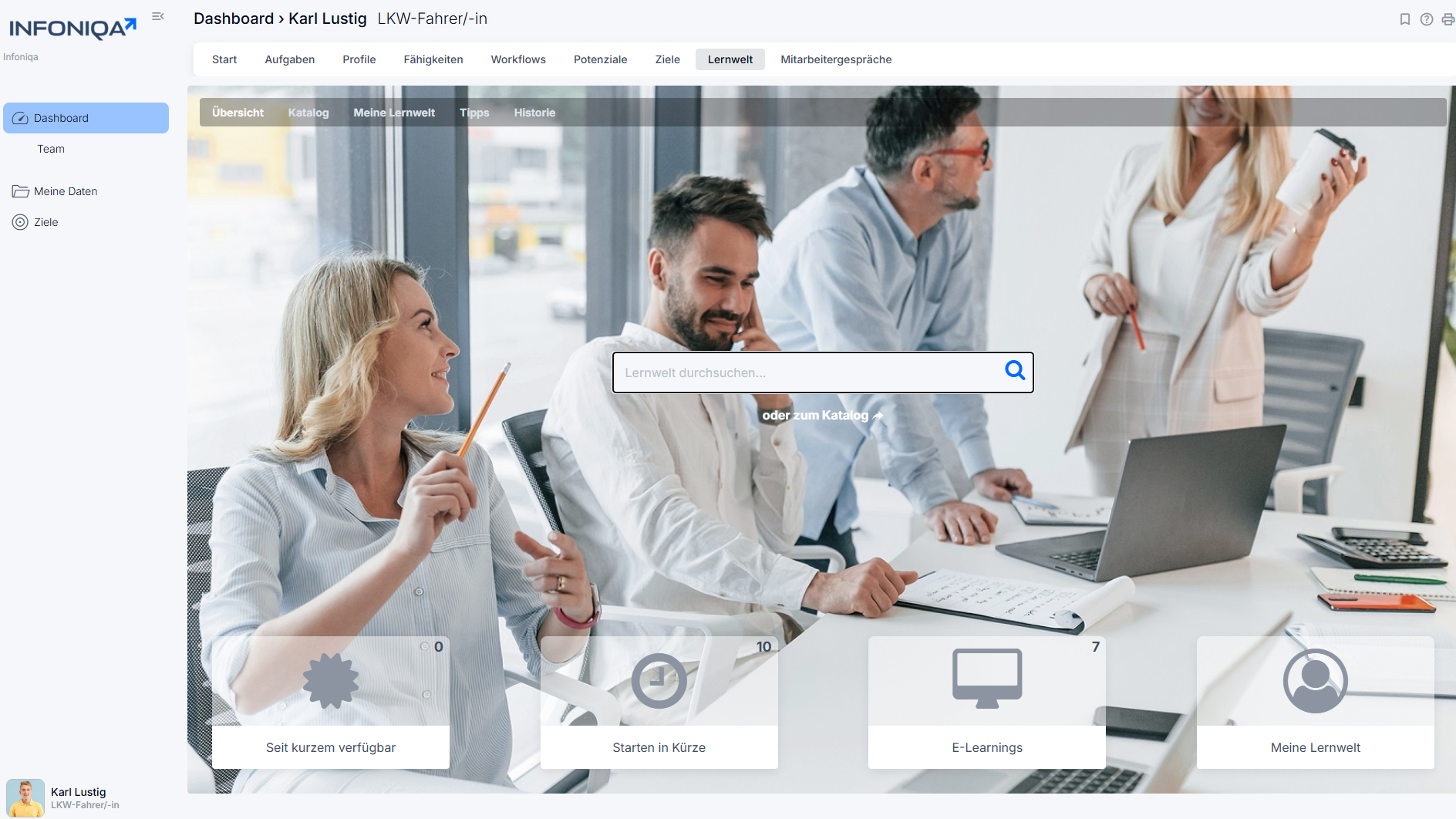 Für Unternehmen bedeutet das mehr Effizienz, für HR weniger Aufwand und für Mitarbeitende bessere Chancen zur persönlichen Entwicklung. On top kannst du mit dem Infoniqa E-Learning auch nachhaltig Lernfortschritte messen.